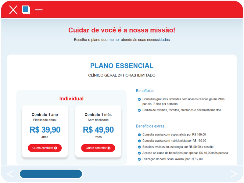 - Utilização do Vital Scan: duas consultas ao mês (por pessoa) gratuitamente